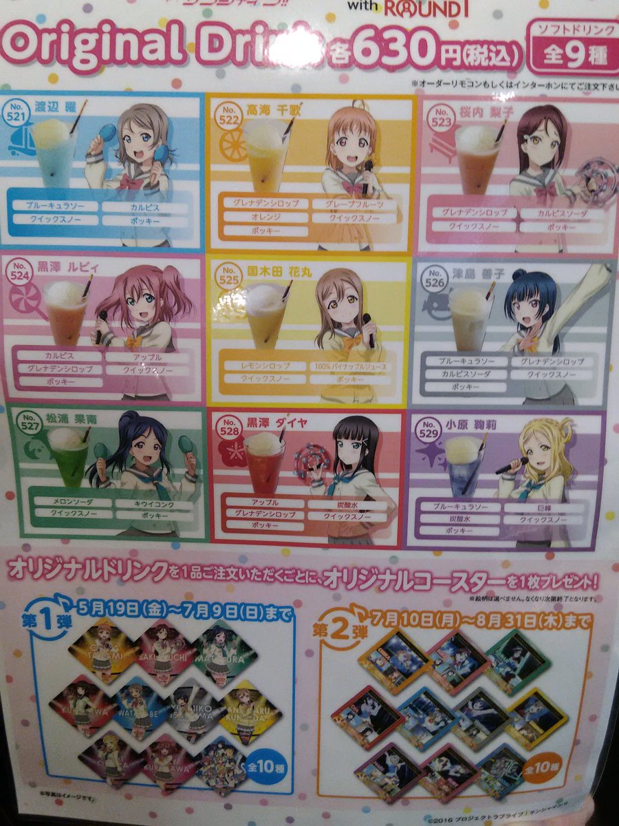 Twitter पर ラウンドワン札幌すすきの店 カラオケ情報 ラブライブ サンシャインとのコラボがスタートしてます 推しのコラボドリンクを頼んで オリジナルコースターをゲットしちゃいましょう ちなみに私の推しは曜ちゃん ラブライバーのみなさまは週末も